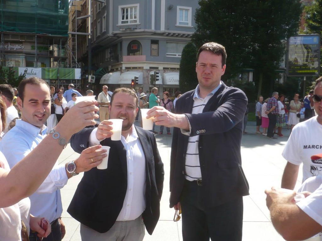 El acto tuvo lugar en la Plaza del Ayuntamiento y sirvió para repartir de forma gratuita mil litros de leche en botellas de un litro y medio pertenecientes a cuatro productores cántabros.