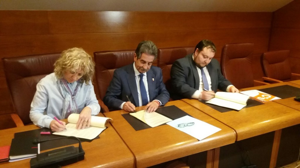 Los diputados del Grupo parlamentario de Ciudadanos, Rubén Gómez y Juan Ramón Carrancio, han firmado hoy, junto al presidente regional, Miguel Ángel Revilla y la vicepresidenta autonómica, Rosa Eva Díez Tezanos, el acuerdo que facilitará la aprobación del presupuesto de 2017.