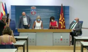 Santander, viernes 7 de agosto de 2020. El grupo parlamentario de Ciudadanos (Cs) Cantabria ha exigido al Gobierno regional que explique por qué la bandera oficial de Cantabria no ocupa un lugar preferente en los actos del Ejecutivo, tal y como ha sucedido en la rueda de prensa ofrecida ayer, seis de agosto, por la consejera de Educación, Formación Profesional y Turismo, Marina Lombó, en la sala de prensa del Gobierno.